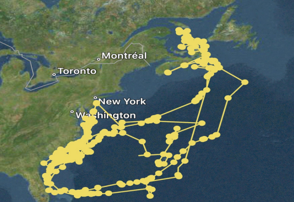 Откако бил означен, тој бил безбедно пуштен назад во океанот. До крајот на годината тој стигнал до Флорида. Истражувачите ги користеле овие географски информации за да ја продолжат својата работа, но тие не биле единствените што го следеле неговото патување.