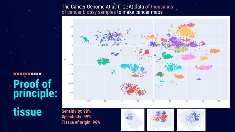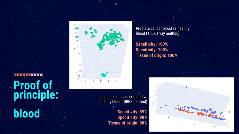 Принципот на работа на ткивниот класификатор е валидиран со сензитивност од 98% и специфичност од 99% на неколку илјади туморно-ткивни примероци (најчесто биопсии) што опфаќаат 15 типа рак. Дополнително, принципот на работа на крвниот класификатор е валидиран со сензитивност од 80-98% (зависно од типот на рак) и специфичност 98% на неколку стотици примероци што опфаќаат рак на простата, рак на бели дробови и рак на дебело црево. Покрај AI-класификаторот, во финална фаза на оптимизирање е и нашиот домашно-развиен молекуларен тест за мапирање на ДНК-метилација со чија помош ќе ги правиме канцерните мапи за втората фаза од развојот на тестот.