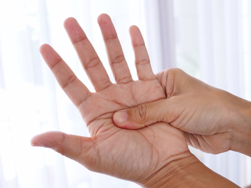 Што се однесува до клиничката слика, меѓу мононевропатиите, најзастапена е мононевропатијата на n. medianus, која претставува компресија на истоимениот нерв, во карпалниот канал. На клинички план се манифестира со болки и парестезии во првиот, вториот, третиот и половина од четвртиот прст, кои се поинтензивни навечер и ноќе, може да се шират проксимално сѐ до рамото и го будат пациентот од сон. Во потешките стадиуми се јавува атрофија на мускулите и намалена груба моторна сила на зафатената страна.