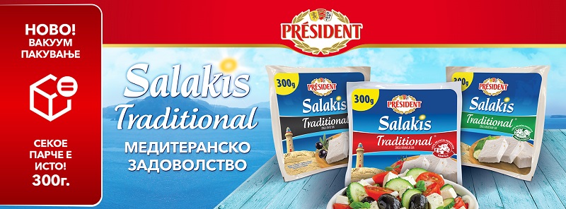 Président Salakis Traditional е создадено за комбинирање со домати, краставици, пиперка и друг свеж зеленчук, а одлично е и на штица со малку маслиново масло.