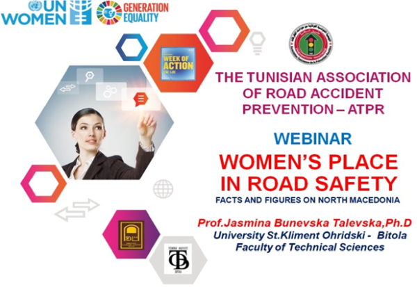Професорката д-р Јасмина Буневска-Талевска од Техничкиот факултет - Битола при УКЛО, на покана од д-р Амира Кадур, претседателка на одделот за интернационална соработка на Институтот за безбедност на патиштата на Тунис, одржа предавање на тема „Местото на жената во безбедноста на патиштата: перцепција и факти за Северна Македонија“, како учесник на стручен собир организиран во рамките на Неделата на акции за еднаквост во пресрет на Форумот за родова еднаквост во Париз.