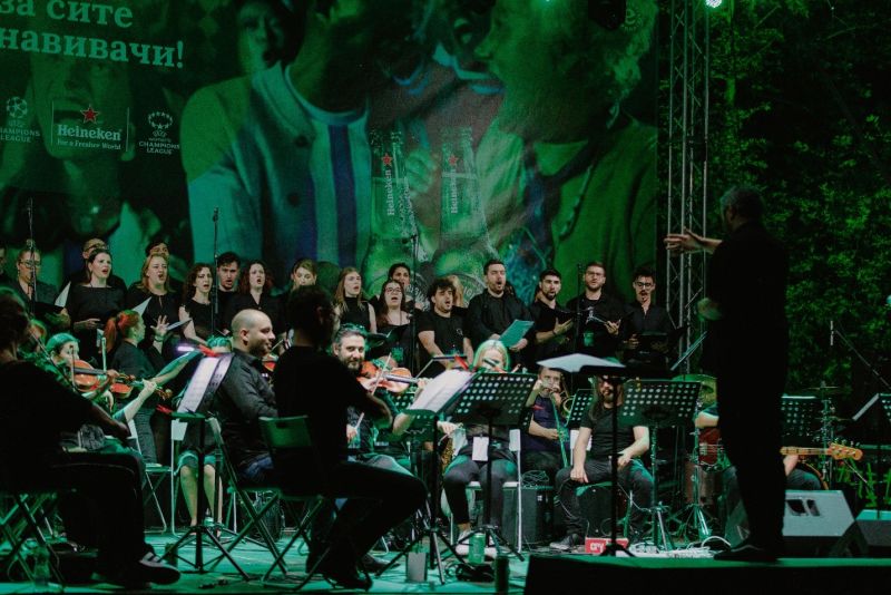 Веднаш потоа атмосферата ја запали настапот на Битолскиот камерен оркестар, кој во полн состав ги изведуваше најголемите хитови од последниве пет децении, со што ги размрда присутните навивачи, а круна на нивниот настап беше изведбата на химната од Лигата на шампионите, која ги најави следните возбудувања и го крена навивачкиот адреналин на највисоко можно ниво.