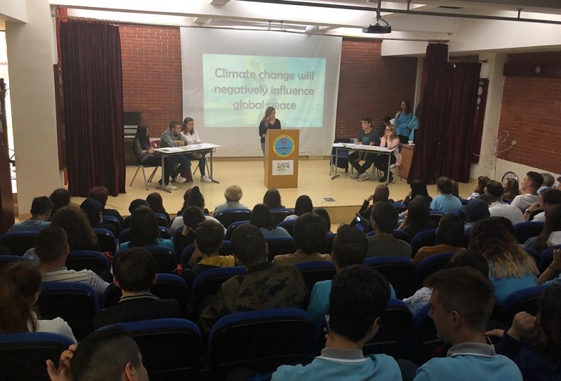 Училиштата разговараа за две прашања: going green треба да се заштити со закон и глобализацијата ќе придонесе за светскиот мир.
