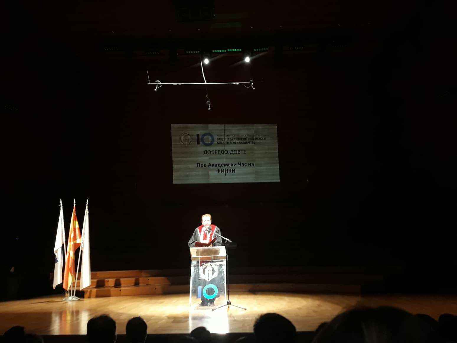 Денеска во Филхармонија се одржа првиот академски час за учебната 2022/2023 година на Факултетот за информатички науки и компјутерско инженерство при Универзитетот „Св. Кирил и Методиј“ во Скопје.