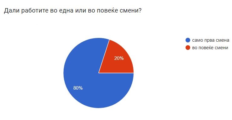 80 отсто од испитаниците работат само прва смена, додека 20 отсто работат во повеќе смени.