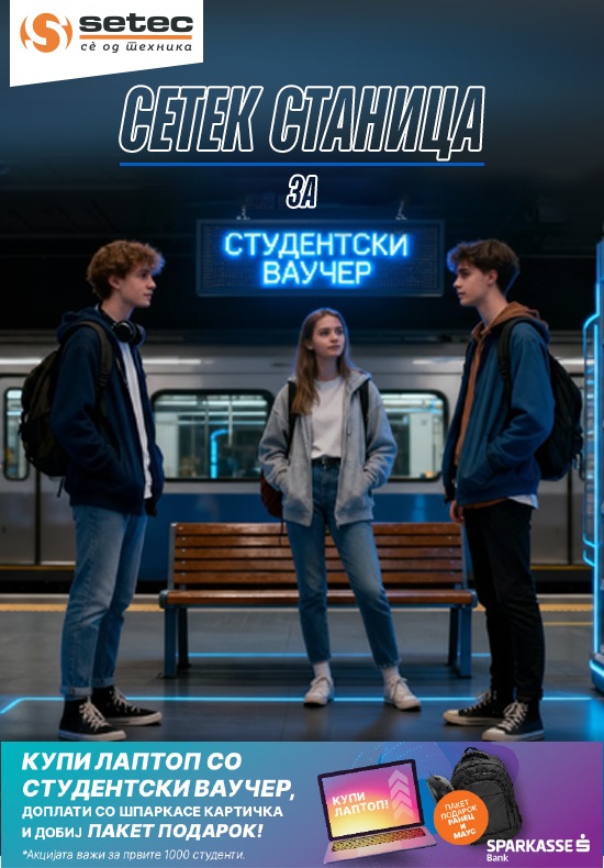 Шпаркасе Банка при купување лаптоп во сите продажни салони на СЕТЕК, ќе добие пакет-подарок – ранец и маус. Кампањата е наменета за првите 1.000 купувачи што ќе извршат доплата со Шпаркасе картичка, обезбедувајќи им директна корист и поддршка во нивниот академски и секојдневен живот.