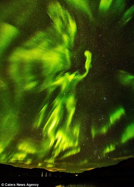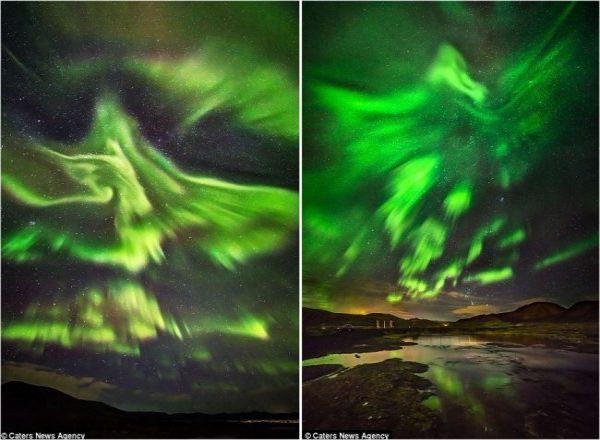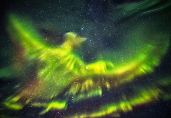 Тие покажуваат уникатен момент кога поларната светлина направи форма на феникс. Во митологијата оваа птица се смета за симбол на бесмртноста бидејќи се крева од пепeлта.