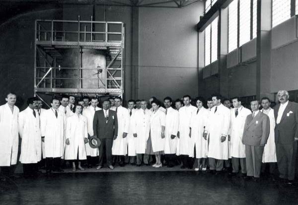 Првата верижна реакција на овој реактор се случила на 30 април 1958 година. Колку тоа значело за меѓународниот престиж на Југославија, говори податокот дека веќе на 17 мај шефот на државата, Јосип Броз, свечено го пуштил во употреба реакторот. На комеморативната плоча пишува дека тој ден во 9 часот и 16 минути и во негово присуство била постигната верижна реакција, што била јасна порака дека во работата со реакторот е постигната заштита од радијација, со околу 200 килограми ураниум. Но, тоа не било така: притискањето на копчето од страна на претседателот било симболично, а заштитата на операторите била далеку под нивото што било достигнато во тогашниот свет.