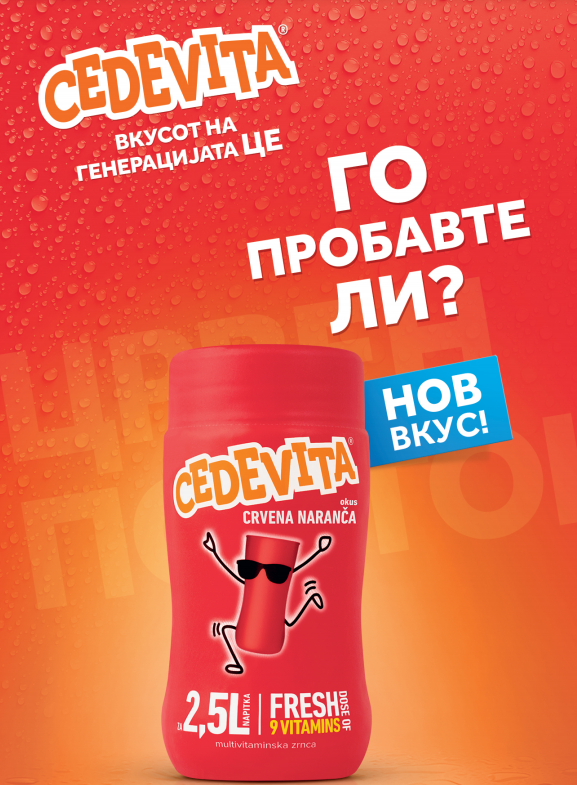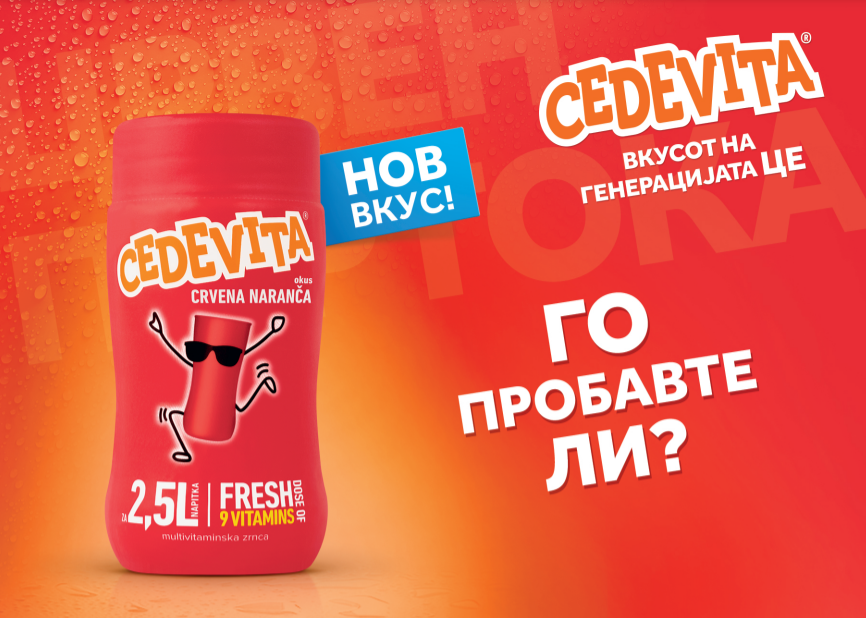 Следејќи ги светските производни трендови, но и слушајќи ги барањата и потребите на потрошувачите низ целиот регион, Цедевита постојано работи на развој на нови иновативни решенија. Резултат на интензивната работа за усовршување на цитрусните вкусови е новата Цедевита од црвен портокал, која од оваа година можете да ја пронајдете во сите пакувања.