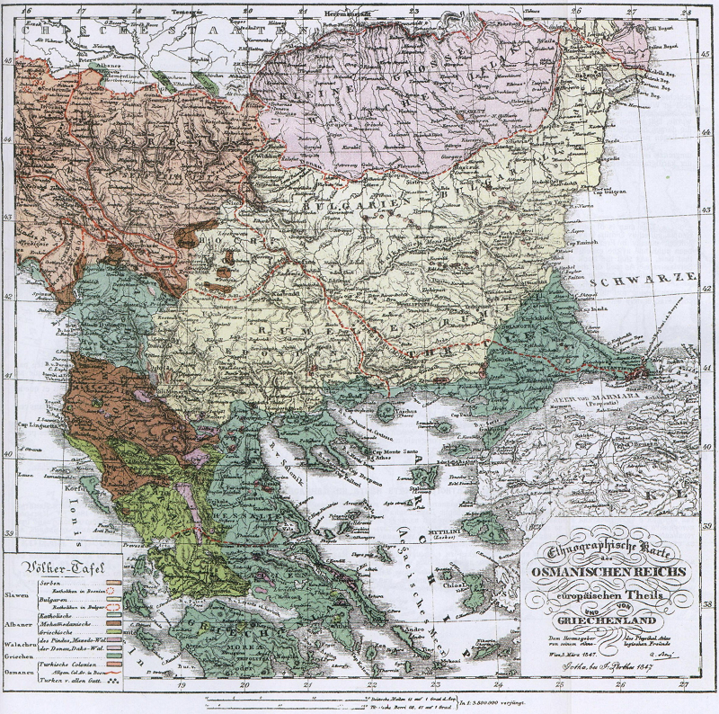 Етнографска карта на Балканот во 1847 година, според австрискиот етнограф Ами Буе
