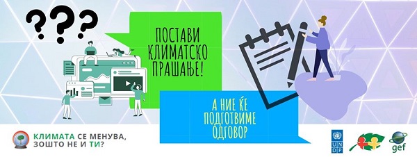 Постави климатско прашање“ на веб-страницата klimatskipromeni.mk. Исто така, прашања поврзани со преземање климатски акции, но и информации за ефектите од климатските промени на глобално ниво и во Северна Македонија, може да поставите и преку директна порака на нашата