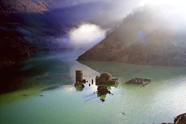 Селото Фабриче ди Карагине, кое се наоѓа на подножјето на Апуанските Алпи (Тоскана), е целосно потопено во вода бидејќи покрај него била изградена брана. Но секоја деценија, заради одржување, мора да се изврши дренажа на сливот, сега наречен езерото Вагли, така што езерото повторно се појавува како дух.