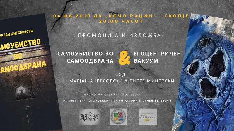 Денеска, со почеток од 20 часот, во Домот на културата „Кочо Рацин“ – Скопје ќе се одржи промоција на новата книга на Марјан Анѓеловски со наслов „Самоубиство во самоодбрана“, заедно со третото отворање на изложбата „Егоцентричен вакуум“ на Ристе Мицевски.