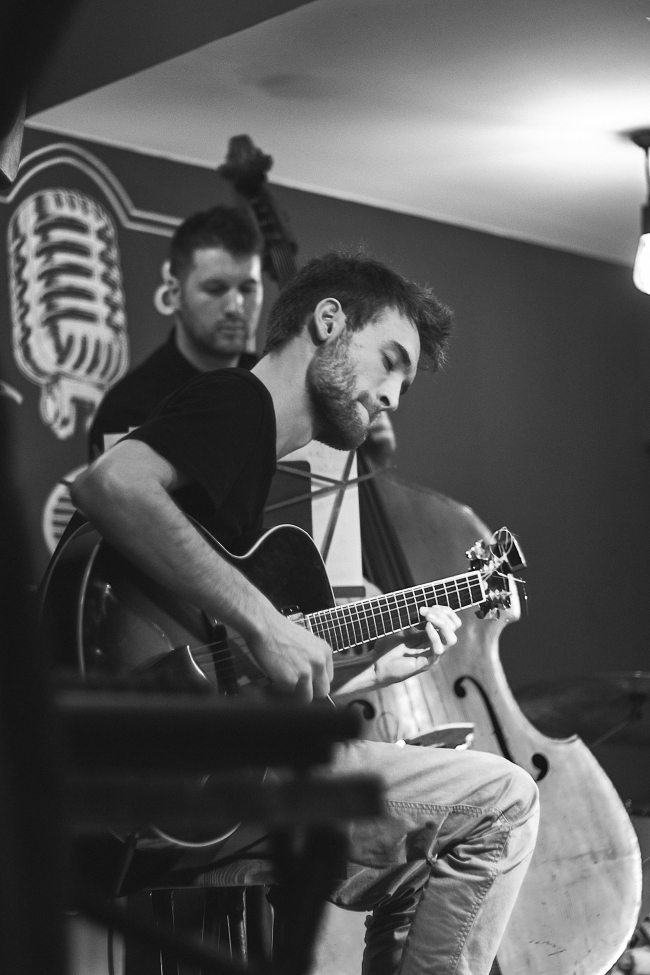 - Џез катедрата во Штип е со многу мала и со мал број на професори, така што, сите ми се мили и имаат влијание. Ванче Хараламповски се уште држи одлични предавања и вежби по хармонија и солфеж. Тоа дефинитивно помогна. Хармонијата од секогаш ми била драга дисциплина. Со професорот Тони Китановски имавме доста дискусии за вкус и естетика. Има едно убаво место, веднаш под факултетот, кај тетка Жаки, слатко турско кафе и муабет со колеги. И тоа помогна, хаха. Свирењето со малкуте колеги помогна најмногу...