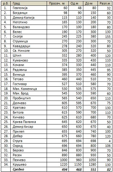 Дали сте се запрашале на која надморска височина се градовите во Република Македонија? Дали знаете дека има само два града под 100 м и еден над 1000 м надморска височина?
