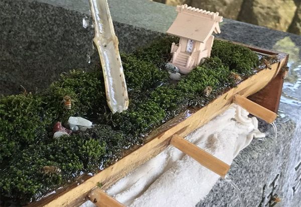 Посетителите на светилиштето имаат базени со вода што се нудат во павилјонот „темизу-ја“. Овие водени светилишта се реплицираат во минијатурна форма во лето за пчелите да можат да се разладат.