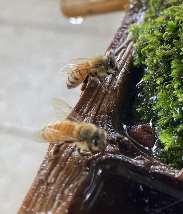 Малите делови од засолништата за пчели се приспособени за малите, но не помалку значајни потреби на овие инсекти. Пчелите се одржуваат хидрирани и среќни со прекрасно стилизирани минијатурни пејзажи кои имаат минијатурни архитектонски структури, мек мов и други површини погодни за искачување. Малите точки за наводнување им даваат на инсектите доволно место за тие да застанат и да се напијат без ризик од давење. Пристапот до чиста, освежителна вода за пиење им овозможува на пчелите да ги стабилизираат температурите на нивните кошници, да го разредуваат медот и да ги хранат своите млади пчели.