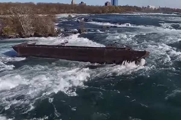 Брод кој повеќе од сто години бил заглавен меѓу карпите над Нијагарските Водопади првпат значително се поместил по обилни дождови и силен ветар.
