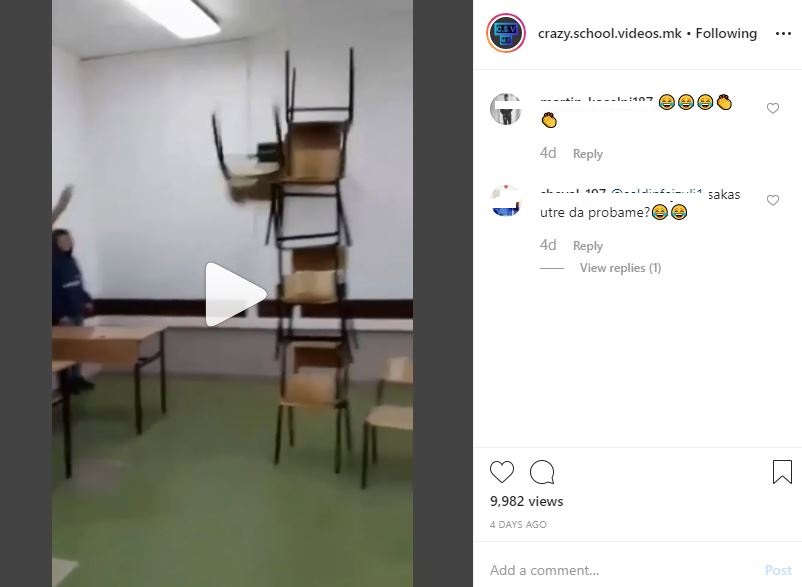 Инстаграм-групата „Crazy.school.videos.mk“, која објавуваше видеа од македонски ученици кои намерно дивеат во училници и кршат училиштен инвентар, е избришана. Не е познато дали таа е отстранета од самата социјална мрежа или админите сами ја избришаа откако