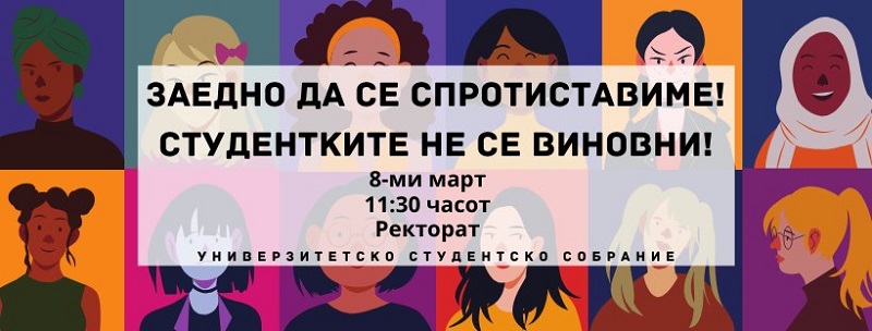 - В очи празникот, секој од нас може да се праша „Kолку е, всушност, среќен овој 8-ми? Сведоци сме на секојдневното буткање на жените на маргините на нашето општество, во здравството, на работното место и, пред сè, во образовниот систем. Неретко студентките при нашиот универзитет се среќаваат со дофрлување, понижување и вознемирување од највисок степен. Не можеме да бараме целосно вклучување на жената во општеството како рамноправна, како човек, ако образовниот процес постојано ѝ се загрозува уште од основното, па сѐ до високото образование – велат од Студентското собрание.