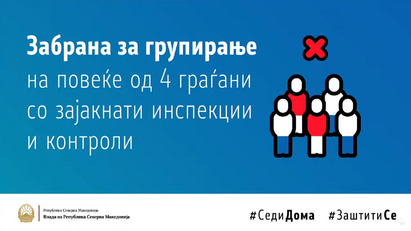 Останува во сила строга забрана за групирање за повеќе од 4 граѓани.