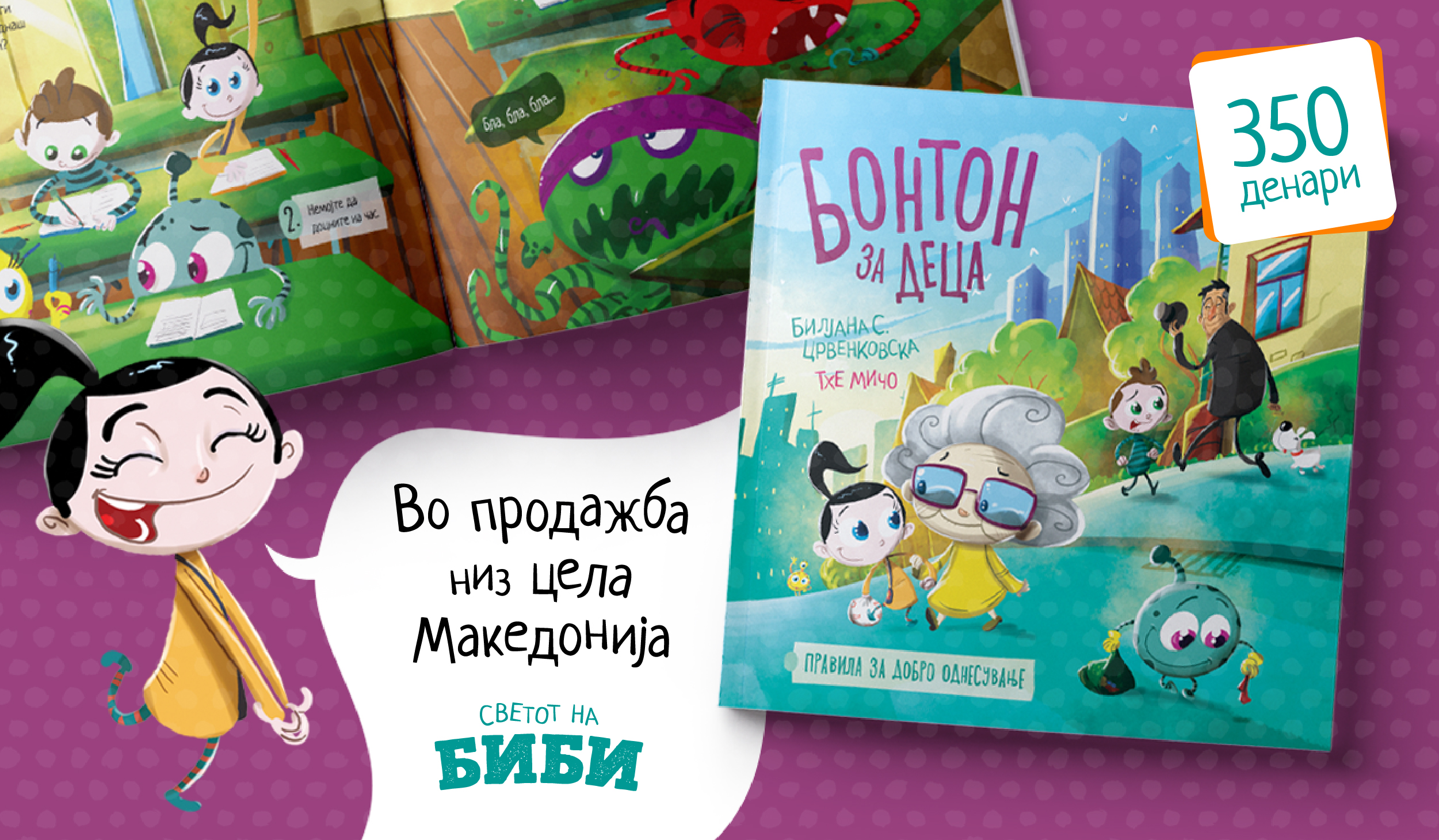 Од денеска е пуштена во продажба новата книга од „Светот на Биби“ - „Бонтон за деца“. Книга која ќе ги научи децата на правилно однесување. Може да ја купите во продавницата во ГТЦ - Скопје или онлајн преку електронската продавница