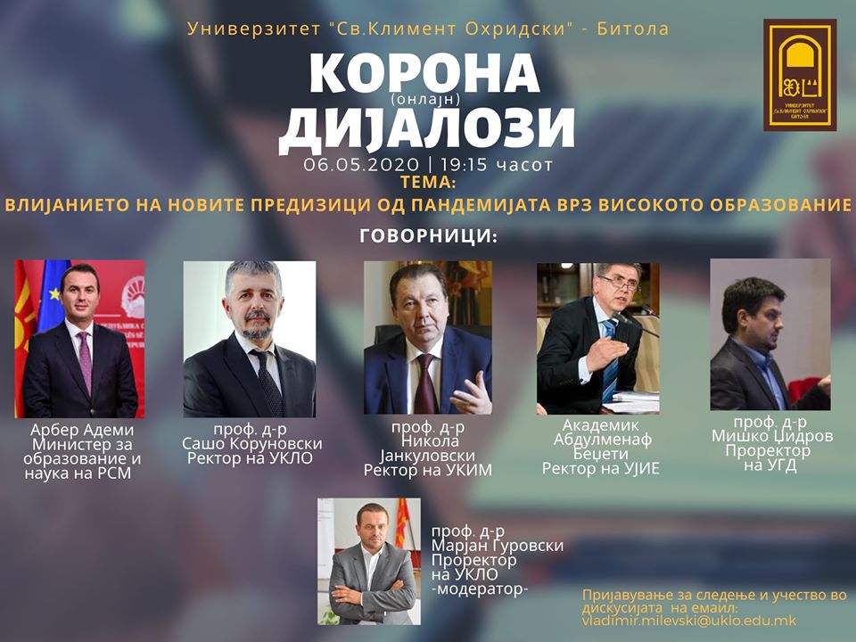 Влијанието на новите предизвици од пандемијата врз високото образование е темата на која утре во 19:15 часот ќе се реализира онлајн-дебата во организација на Универзитетот „Св. Климент Охридски“ од Битола. На дискусијата ќе учествуваат претставници од повеќе високообразовни институции во земјава.