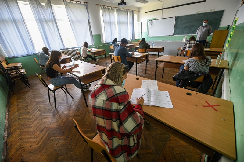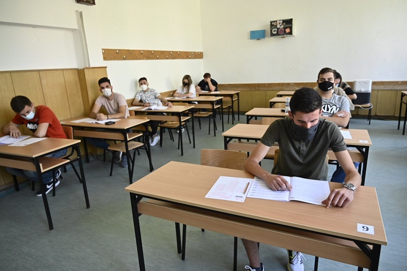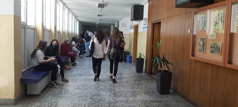 - Полагањето почна навреме. Децата носат маски, сѐ е дезинфицирано во просториите. Во оваа гимназија денеска мајчин јазик полагаат 315 ученици, односно сите матуранти во училиштето. Се подготвуваа изминатиот период, имаа дополнителни часови, сѐ беше во ред. Досега сѐ добро се одвива, ќе видиме колку долго ќе издржат со маски, со оглед на фактот дека испитот трае четири часа - ни рекоа во гимназијата.
