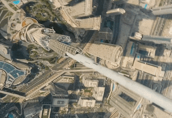 Уметникот Андре Ларсен сака да им покаже на луѓето како би изгледал падот од таа висина. За таа цел, тој пилотирал дрон од самиот врв на „Бурџ Халифа“ до долу. Гледањето на видеото е надреално искуство.