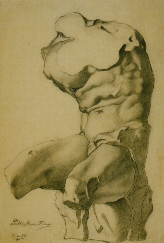 Она што веројатно најмногу ги вознемирило тие први гледачи било перцепираното насилство врз традицијата. Иако не можеме да ги вратиме нежните сензибилитети на париските критичари од почетокот на 20 век, можеме да доживееме сличен шок гледајќи ги делата што Пикасо ги направил десет години претходно, како што се „Првата причест“ од 1896 година и студијата „Наука и милосрдие“ од 1897 година, конзервативни жанровски слики во академски стил, прекрасно изведени со извонредна вештина од тогаш 15-годишен уметник. „Студија за торзо“, пак, е завршено во 1892 година кога Пикасо имал само 11 години.