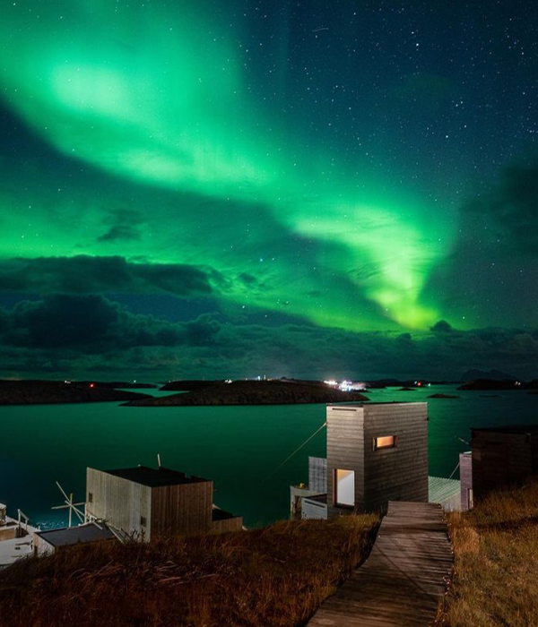 Секоја од десетте еколошки кабини на гостите им нуди прекрасен поглед кон Норвешкото Море, блиските острови, изгрејсонце, поларна светлина, полноќно сонце и др.
