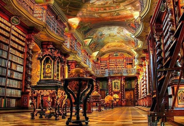 Библиотеката Клементинум, извонреден пример за барокна архитектура, првпат била отворена во 1722 година во рамките на језуитскиот универзитет. Во неа се наоѓаат над 20.000 книги. Читателите на „Борд панда“ ја прогласија оваа библиотека за една од најубавите и највеличествените во