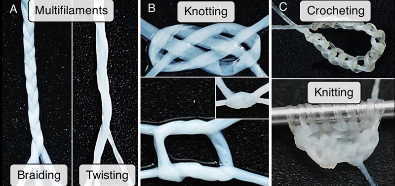 За да го создадат, истражувачите сечат делови од клетки од човечка кожа во форма на долги ленти и потоа ги „ткаат“ во материјал во форма на конец, кој може да се направи во разни форми.