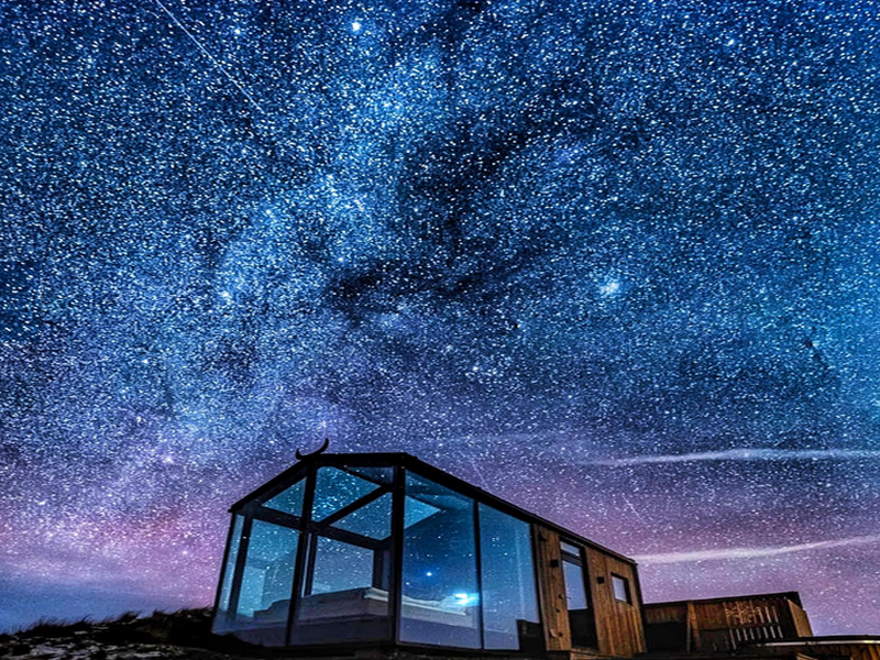 Во пустина од лава, на само пет минути оддалеченост од градот Хела на југот на Исланд, се наоѓа оваа прекрасна стаклена куќарка за двајца. Во малиот град во кој живеат 800 жители можете да најдете базен, фитнес-сала, сауна, тобогани, бензинска пумпа, супермаркет, продавница за алкохол и медицински центар.