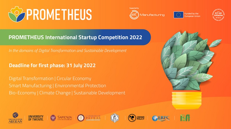 (https://hei-prometheus.eu/), финансиран од страна на Европската Унија, како дел од ЕИТ-иницијативата за високообразовни институции каде што учествува Универзитетот „Св. Кирил и Методиј“ во Скопје, се организира PROMETHEUS Интернационален стартап-натпревар 2022.