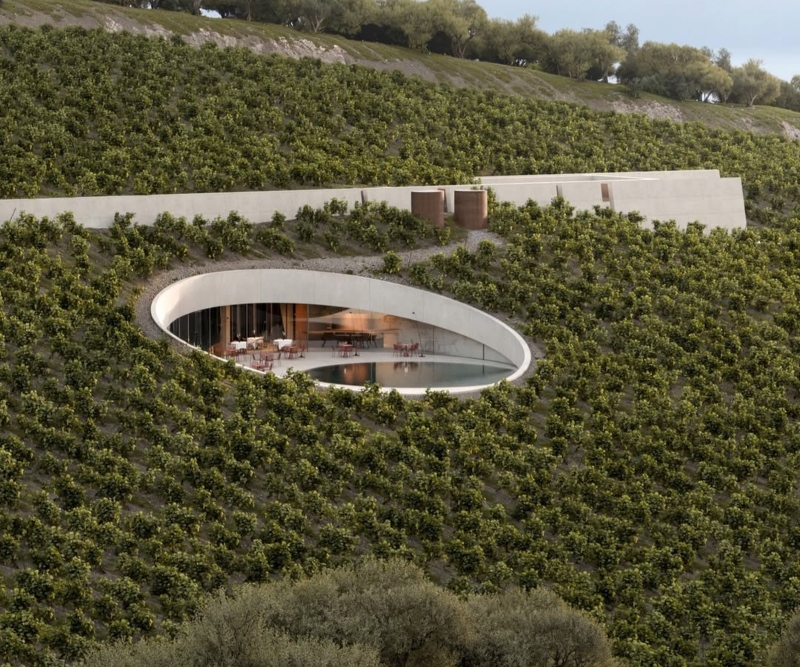 Во северниот дел од грчкиот остров Евија, архитектот Фотис Запантиотис дизајнираше уникатна винарија која на посебен начин ги комбинира архитектурата, природата и вековните традиции на производство на вино. Проектот наречен „Ктима Аидипсос“ се наоѓа во живописен предел опкружен со лозја, а неговата уникатност лежи во целосното почитување на природниот терен, микроклимата и целиот процес на производство на вино.