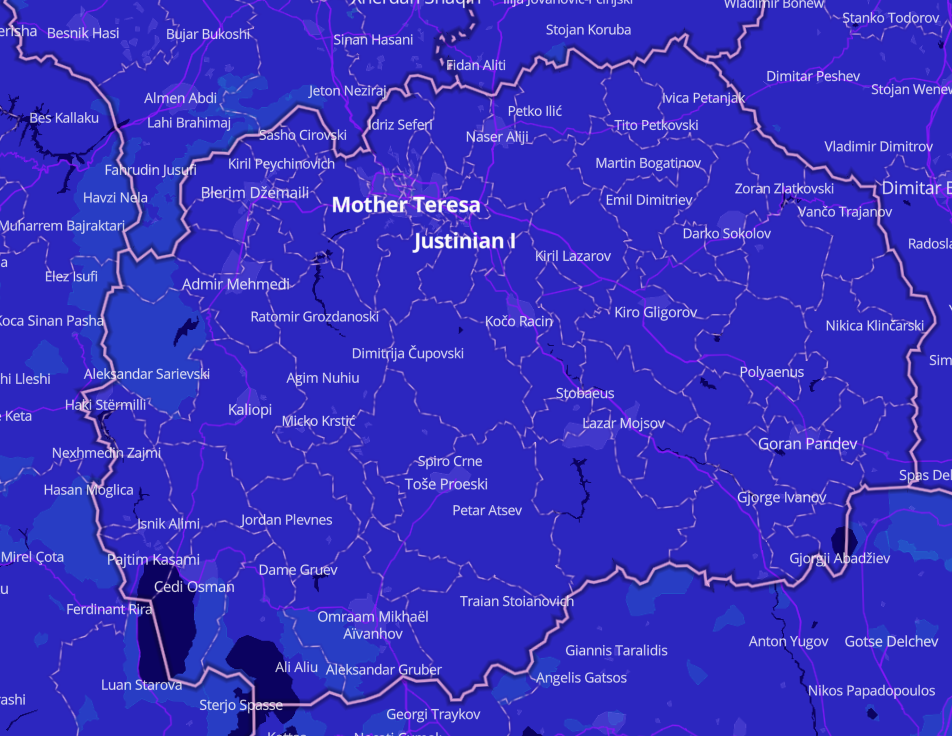 Една детална интерактивна мапа може да ви го даде одговорот на ова прашање. Според неа, Мајка Тереза е најпозната личност родена во Македонија, но доколку „зумирате“, може да ги видите имињата на најпознатите лица од секој дел од земјата.