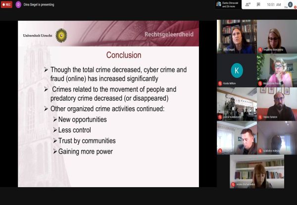 На пленарната сесија свои излагања имаа проф. д-р Дина Зигел од Институтот за казнено право и криминологија „Вилем Помпе“ при Универзитетот во Утрехт, Холандија, и вон. проф. д-р Дениз Серт од Одделот за меѓународни односи при Универзитетот „Озјегин“ во Истанбул, Турција. Пленарната сесија ја модерираше раководителката на Центарот за научноистражувачка работа при Правниот факултет, вон. проф. д-р Ангелина Станојоска.