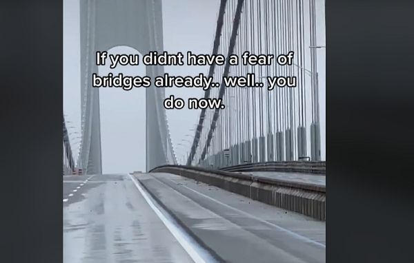 Мостот „Верацано-Нероус“ во Њујорк бил затворен во понеделникот поради силниот ветер. Морничаво видео објавено на „Тик-ток“ го покажува празниот мост како се ниша на ветрот, а притоа се слушаат и застрашувачки звуци.