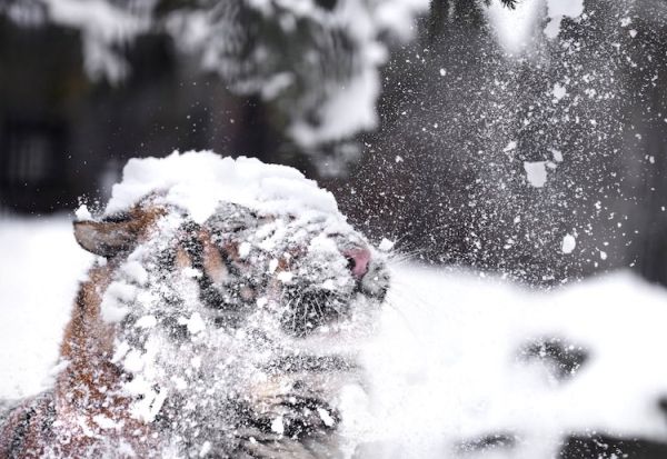 Јапонскиот фотограф познат како Рику успеал да фотографира едно од овие суштества на снегот. Во серија од четири фотографии направени во зоолошката градина „Асахијама“ во префектурата Хокаидо, тигарот допира гранка на дрво натежната од мекиот снег. Тигарот ја чукнал гранката, поради што целиот снег му паднал на глава.