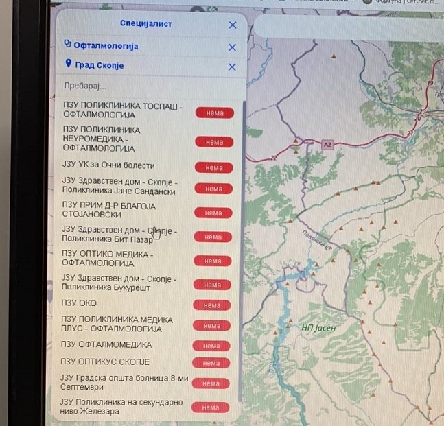 За прегледот кој треба да се закаже преку „Мој термин“, матичните доктори со кои контактиравме велат дека слободни термини едноставно нема, па тие се доведени во ситуација секојдневно да се објаснуваат со родители дека нема начин како да им помогнат. Некои од докторите ни дозволија и увид во системот, каде што се гледа дека во ниту една здравствена институција што има договор со Фондот за здравствено осигурување нема слободен термин.