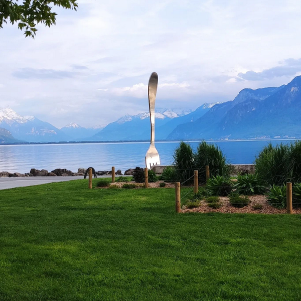 На брегот на Женевското Езеро, на швајцарско-француската граница, се наоѓа гратчето Веве - создадено за мирен одмор, прошетки покрај езерото и уживање во идилата што ве опкружува, но и џиновската виљушка која излегува од езерото.