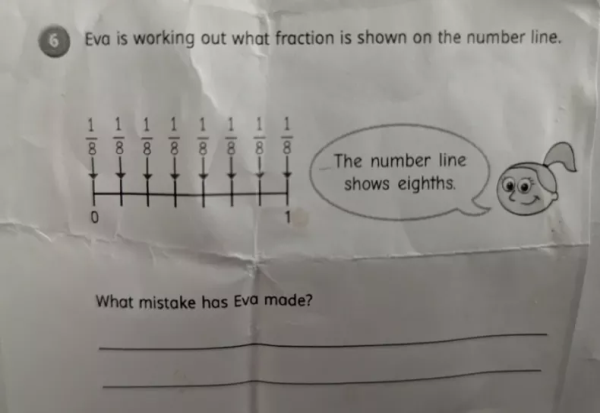 Марк објавил фотографија од задачата со опис: „Домашната на мојот 7-годишен син ме тера да се посомневам во мојот разум. Јас навистина не гледам грешка. Бројната оска навистина изгледа како да прикажува осмини“.