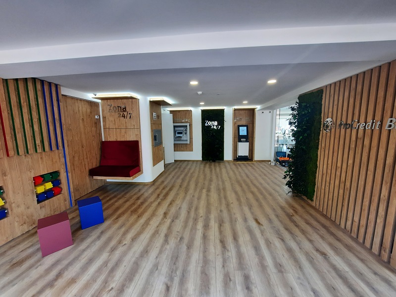Со цел поголема достапност и персонализиран пристап до клиентите, во новата филијала ПроКредит го проширува тимот на лични банкарски советници кои нудат комплетна поддршка во процесот на носење финансиски одлуки, како за правни така и за физички лица. Дополнително, на новата локација клиентите имаат пристап до сите дигитални услуги на новата модерна 24/7 зона, опремена со современи банкомати, можности за внесување дневен промет, drop box, уплата и исплата на денари и евра. Разбирајќи ги потребите на нашите клиенти и нивните семејства, новата филијала во 24/7 зоната вклучува и детско катче.