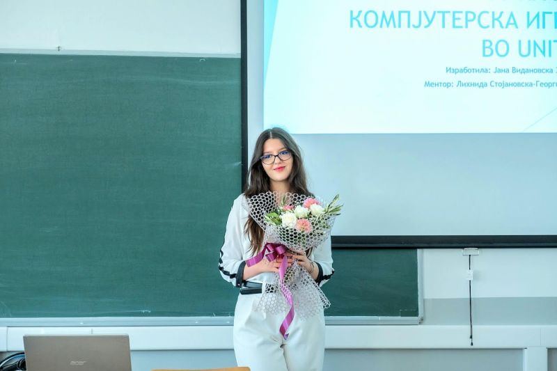 - Инспирирана од позитивното искуство со овој проект, одлучив и мојата дипломска работа да е на тема поврзана со развојот на компјутерски игри. Посветив пет месеци создавајќи друга, поголема и подобро осмислена игра - од дизајнот, целиот код и корисничкиот интерфејс, до визуелната уметност, анимациите и сите мали детали што се потребни за да се заокружи ваков проект. Оваа дипломска работа ја сметам за мој најзначаен академски успех, не само поради крајниот резултат, туку и затоа што преку целиот процес сфатив дека програмирањето е нешто што навистина можам и сакам да го работам професионално – објаснува Видановска.