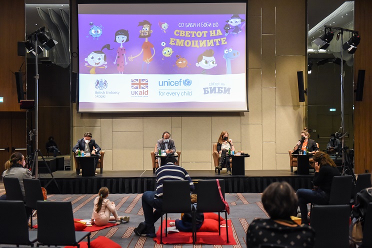 УНИЦЕФ, Амбасадата на Обединетото Кралство во Скопје и „Светот на Биби“ покренаа нова иницијатива за поддршка на родителите при развивање вештини за користење активности за социјален и емоционален развој на децата преку игра.Новата иницијатива на УНИЦЕФ и „Светот на Биби“, финансирана од Амбасадата на Обединетото Кралство, опфаќа серија анимирани приказни, сликовници и друг материјал за поддршка на социјалното и емоционалното учење во најраните години од животот. Иницијативата беше претставена вчера на онлајн-работилница каде што родителите можеа да комуницираат со експерти и да добијат практични совети за активности со кои ќе им се помогне на децата да научат како да ги препознаат и да се справат со емоциите.