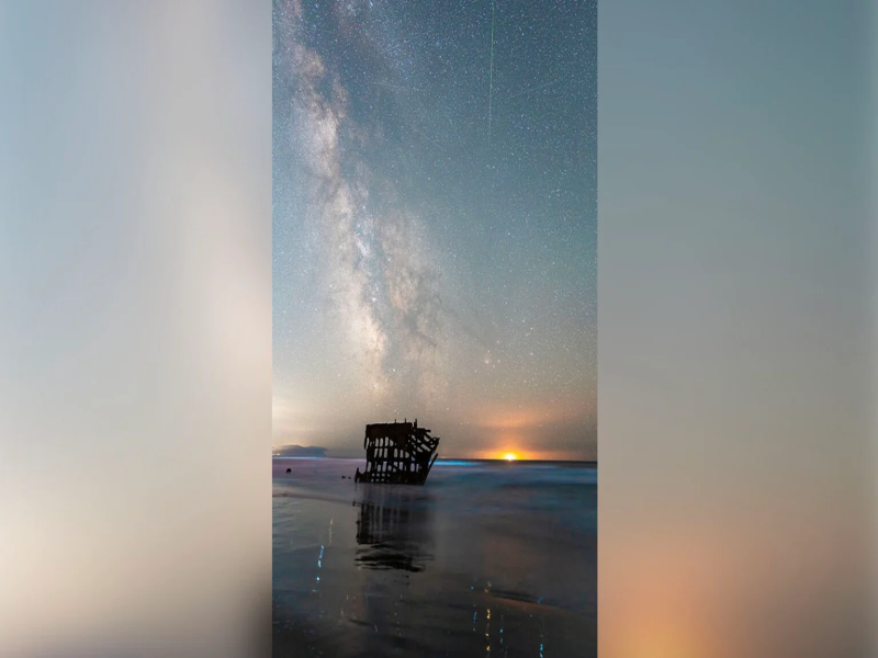 Фотографот Џеј Шах неодамна направи спектакуларна фотографија со повеќе природни феномени на неа, вклучувајќи ги метеорскиот дожд Персеиди, галаксијата Млечен Пат, биолуминисценцијата во водата, зајдисонцето на Тихиот Океан и бродолом.