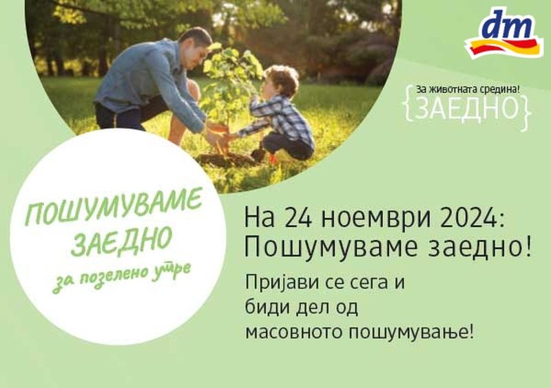 Компанијата dm со гордост ви го најавува третото продолжение на екопроектот „Пошумуваме заедно за позелено утре“! Овој проект тие го започнаа во 2022 година, а досега посадија речиси 60.000 нови садници.