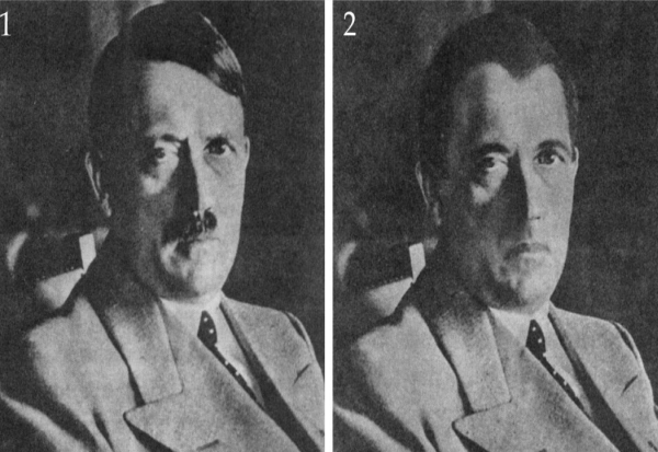 Кон крајот на Втората светска војна американските разузнавачи се плашеле дека германскиот диктатор ќе избега од Германија со претпоставка дека ќе го промени изгледот и ќе се маскира. До 1944 година светот го идентификувал Хитлер главно според неговиот заштитен знак - мустаќите и мрсната коса залижана настрана, па било наредено да се клонира неговиот портрет.