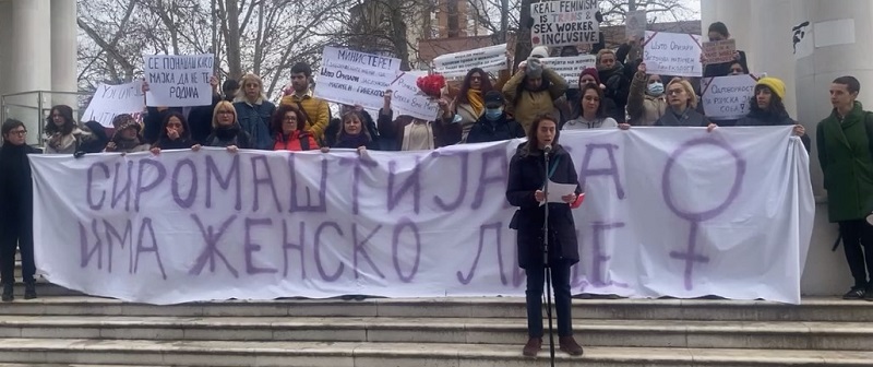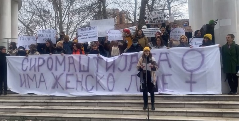 „Во нашата земја вработени се половина од жените кои се работоспособни, разликата во стапката на вработеност меѓу мажите и жените е двојно поголема од европскиот просек и една од највисоките во Европа. Јазот на вработеноста меѓу мажите и жените е исто висок како и пред дваесет години. Повеќе од половина од жените што се работоспособни, ниту се вработени ниту се регистрирани во Агенцијата за вработување. Половина од овие жени се исклучени од пазарот на труд и немаат приход од платено вработување бидејќи мора да се грижат за домот и за децата. Велиме мајка ми не работи, таа е домаќинка, велите жена ми седи дома, не работи. Но, тоа не е така, овие жени работат секој ден. Над 220.000 жени кои статистиката ги води како домаќинки работат секој ден, но не заработуваат од својот труд. Зависни се од приходите на домаќинството, постојано се под ризик на економско насилство и ја живеат староста без пензија“, рекоа на денешниот протестен марш „Сиромаштијата има женско лице“ активистките од Платформата за родова еднаквост.